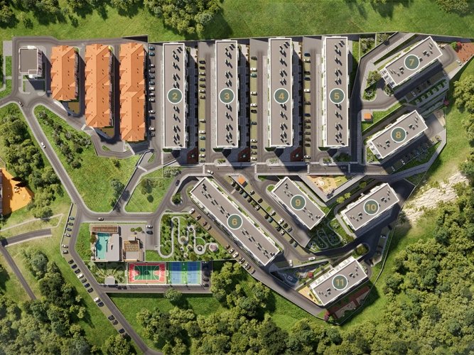 Обширная территория комплекса позволяет удовлетворить все потребности наших жильцов - здесь есть все необходимое для отличного отдыха и комфортного проживания. Мы предоставляем высококлассные услуги и удобства для того, чтобы жильцы могли наслаждаться своим временем, не отходя далеко от дома.